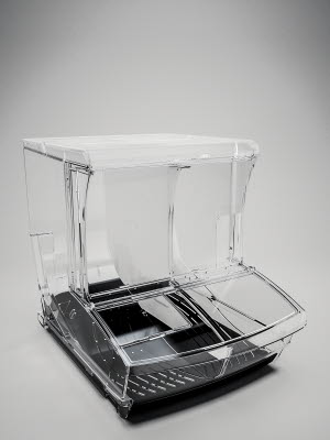 Customisable scoop bins with two size options, optimising product visibility. The slow, quiet self-closing lid keeps products fresh, while the patented design allows for compact transport, reducing freight and warehouse costs. Easy to mount, clean, and replace parts.