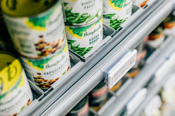 Each discreet frame sits behind the front riser and directly on the shelf, making installation quick and maintenance minimal. Made from partially recycled plastic, Facer™ is part of the HL Sustainable Choice range.